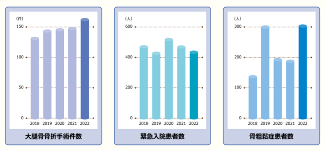 同時に再骨折予防として、骨粗鬆症治療を行っています。さらに地域の医療機関と連携して骨粗鬆症治療の継続をはかっています。